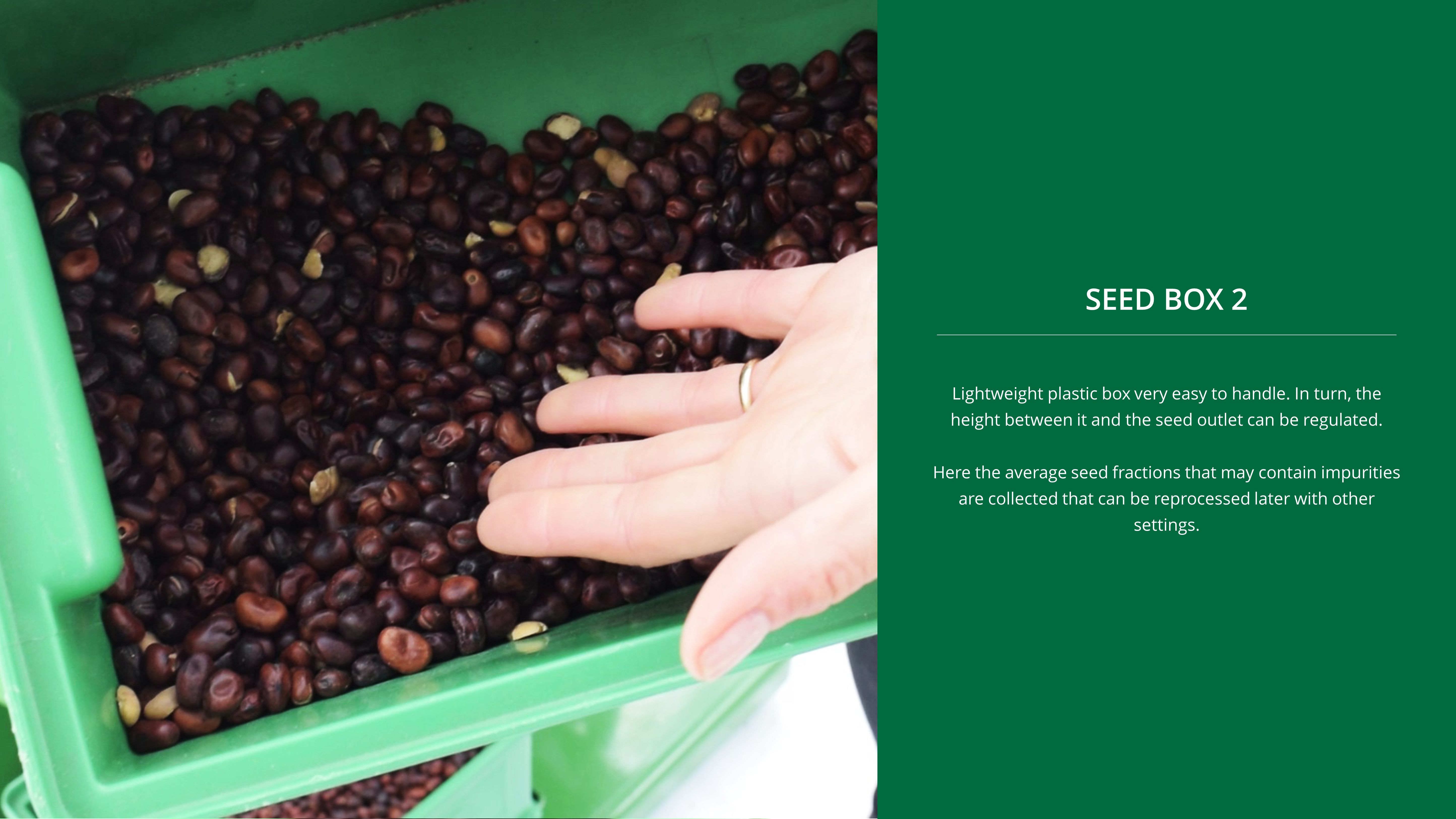 Even highly sensitive seeds will not be damaged thanks to the gentle transport and airflow cleaning process.