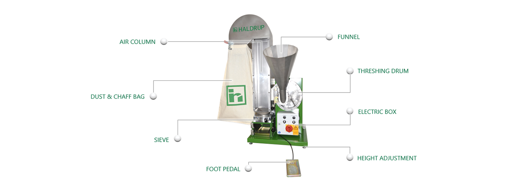 HALDRUP LT-15 is a laboratory thresher for use with individual plants and small bundles.