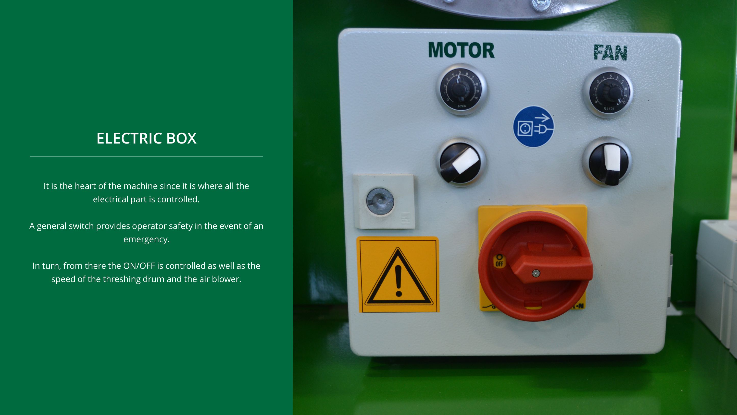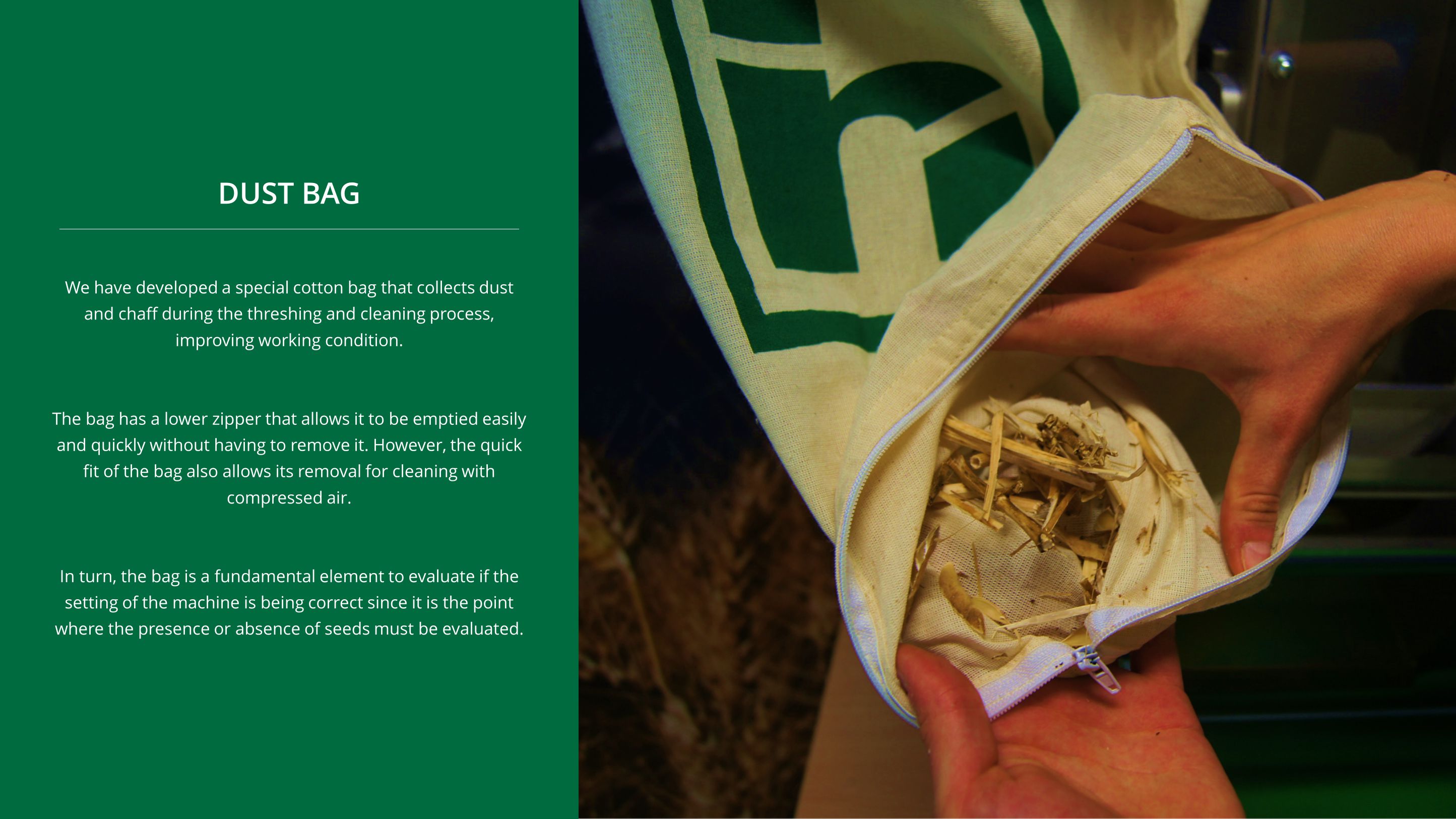 The continuous speed adjustment of wind and threshing drum allow for simple and quick adaption to various cultivated crops.