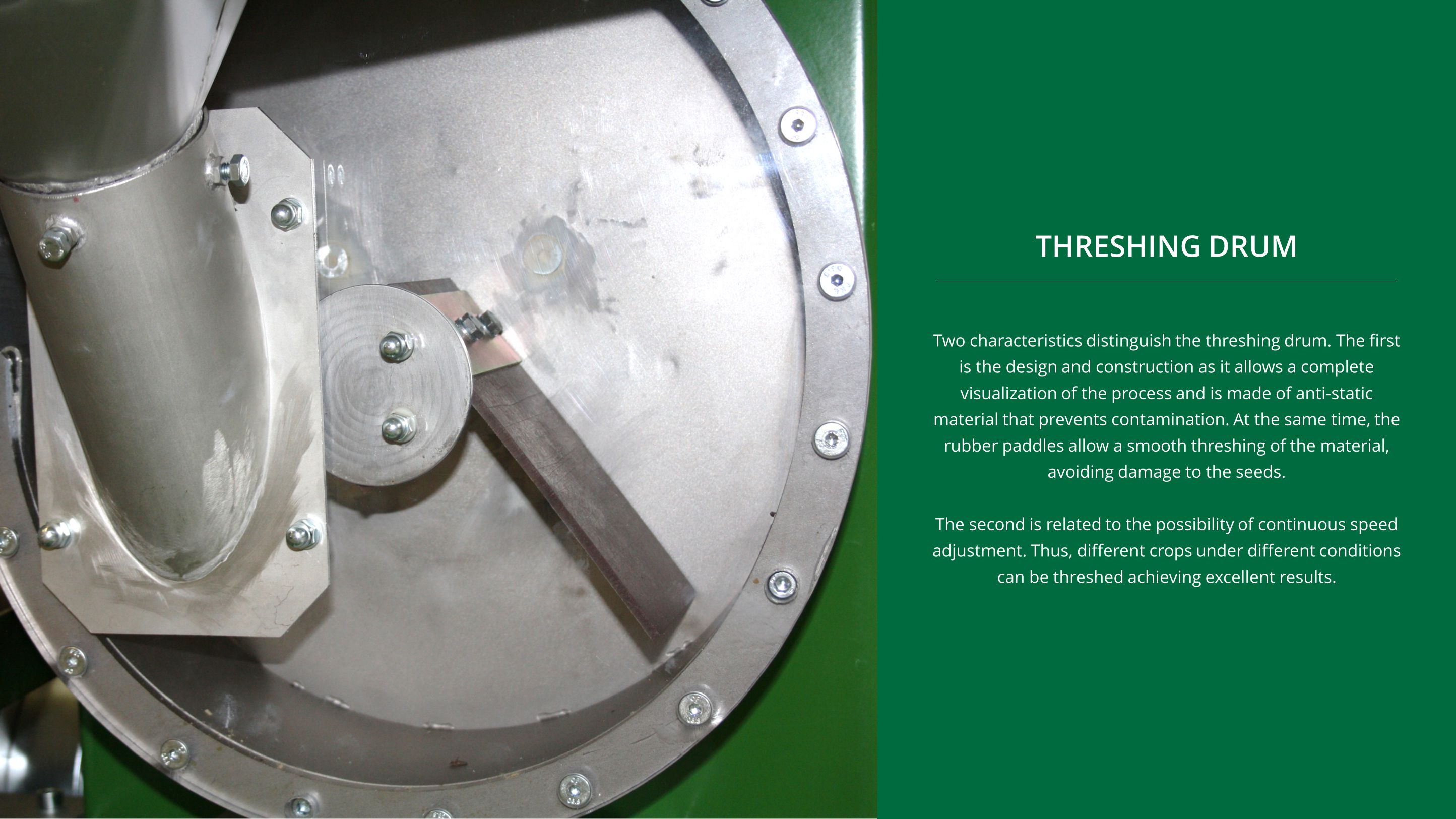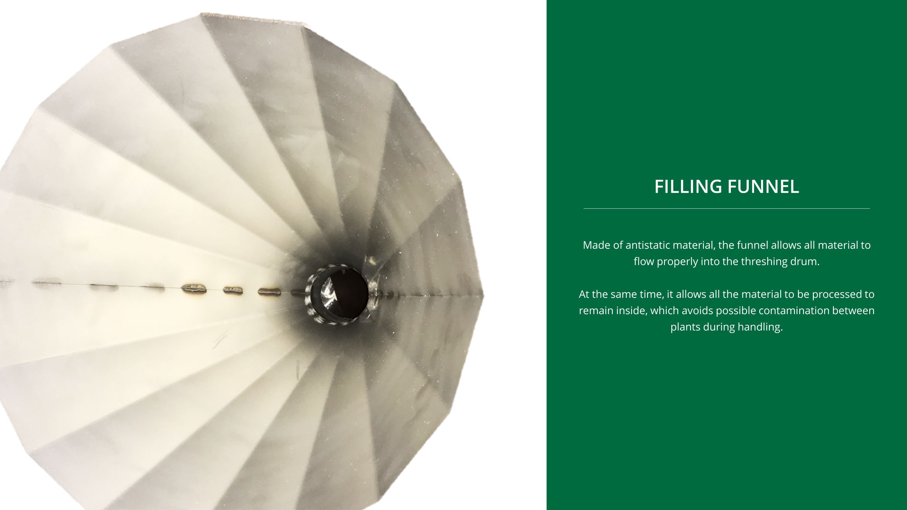 Its robust and clearly arranged built allows for quick and simple threshing as well as a good view of the entire threshing and cleaning process. Easy access to the cleaning column is guaranteed due to the elaborate construction of the lab thresher.