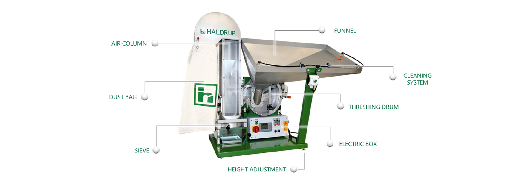 HALDRUP LT-20 is a laboratory thresher for use with individual plants and ear bundles.