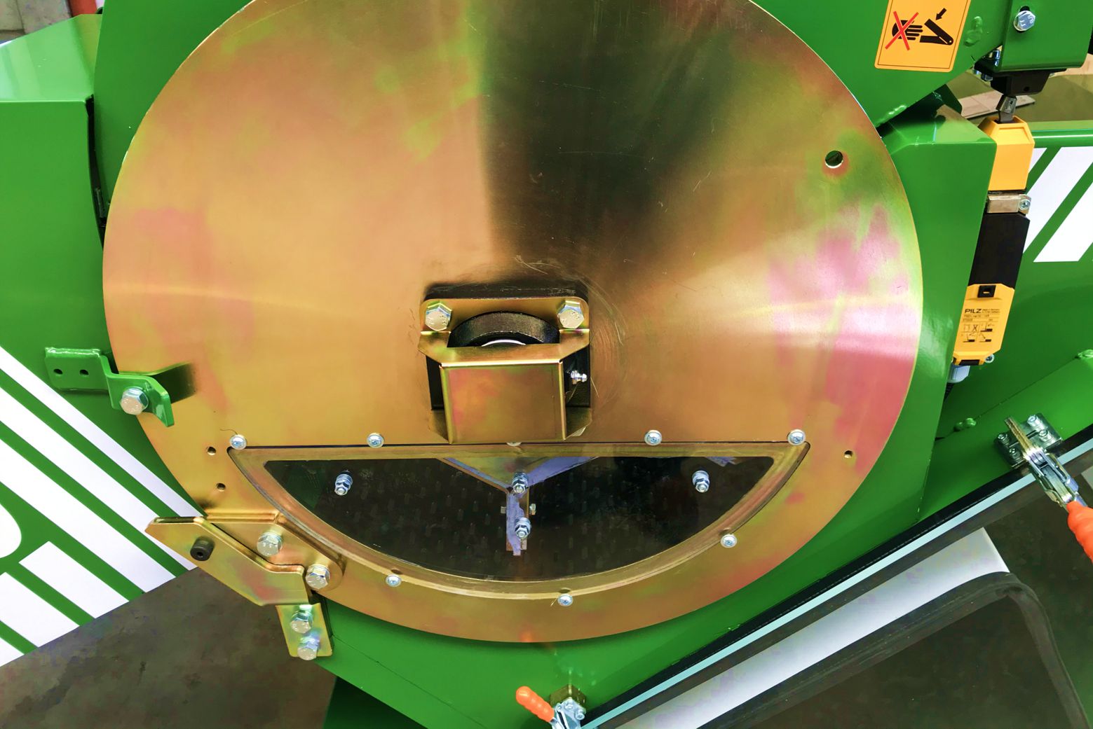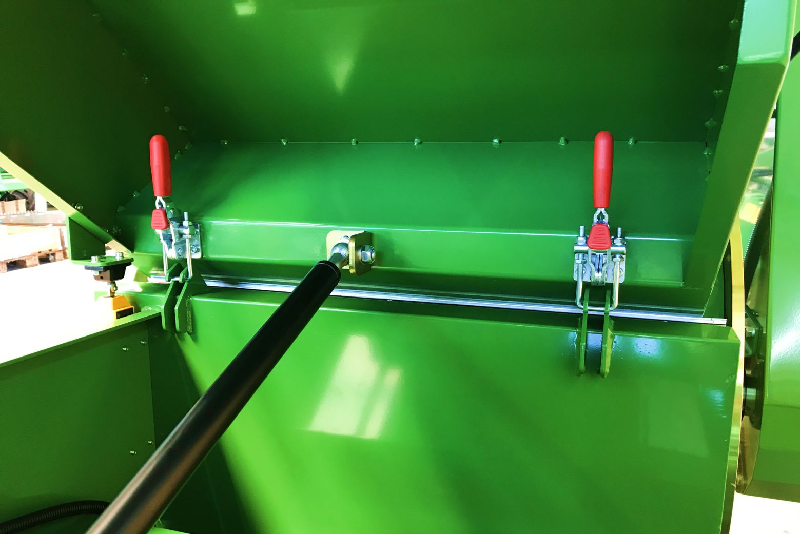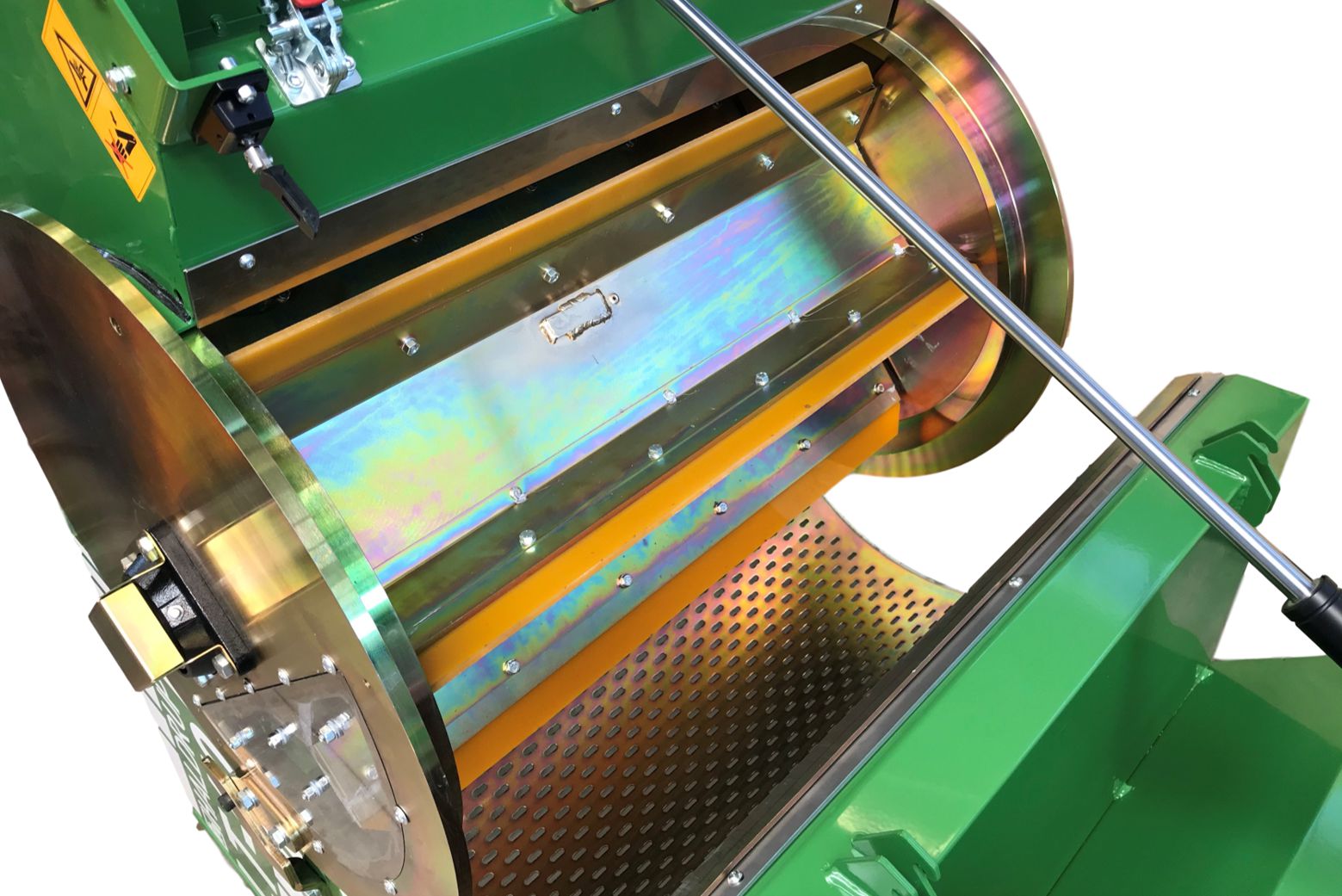 The concave can be easily accessed by folding up the machine housing; the concave can be changed without the use of tools