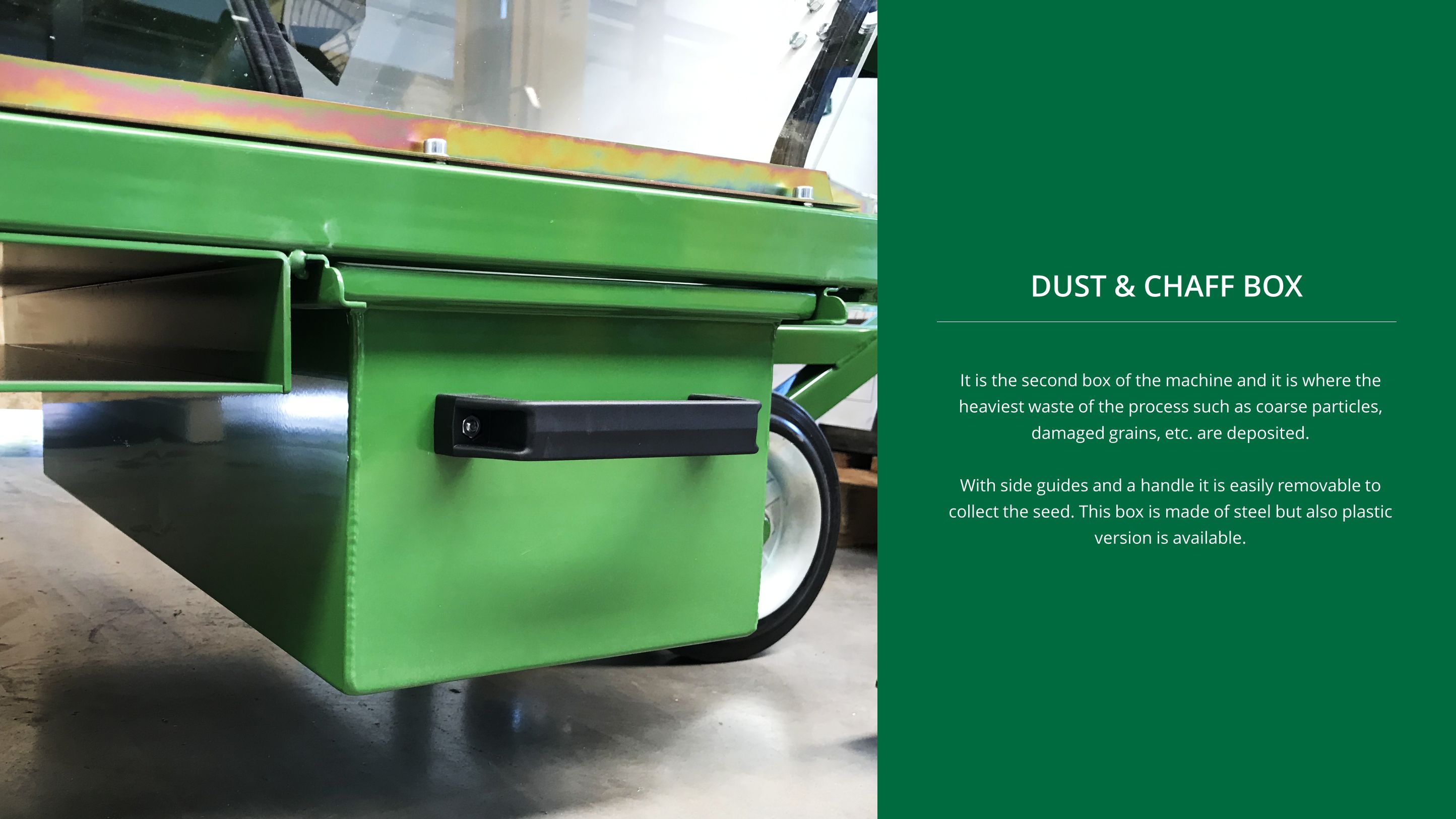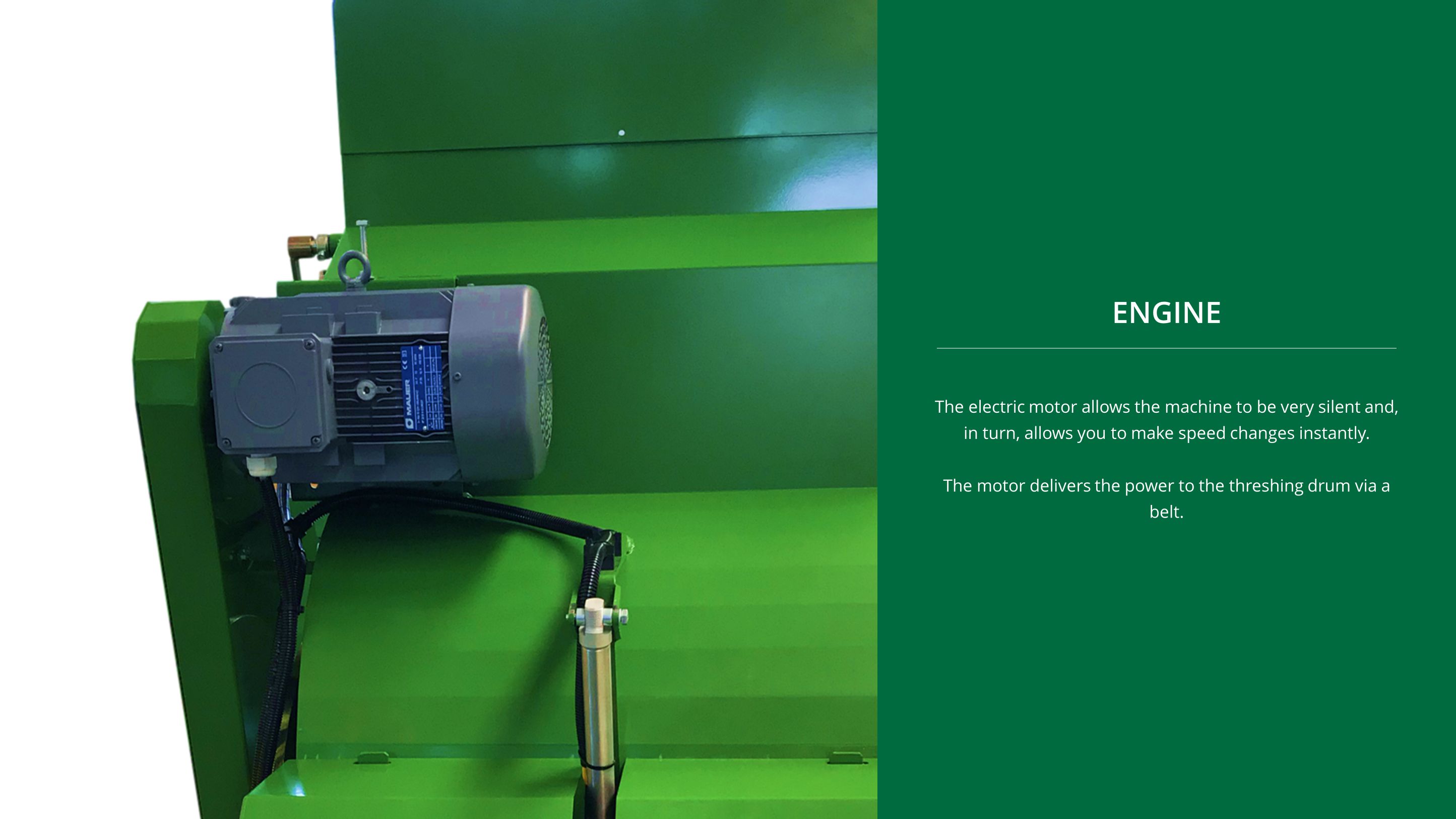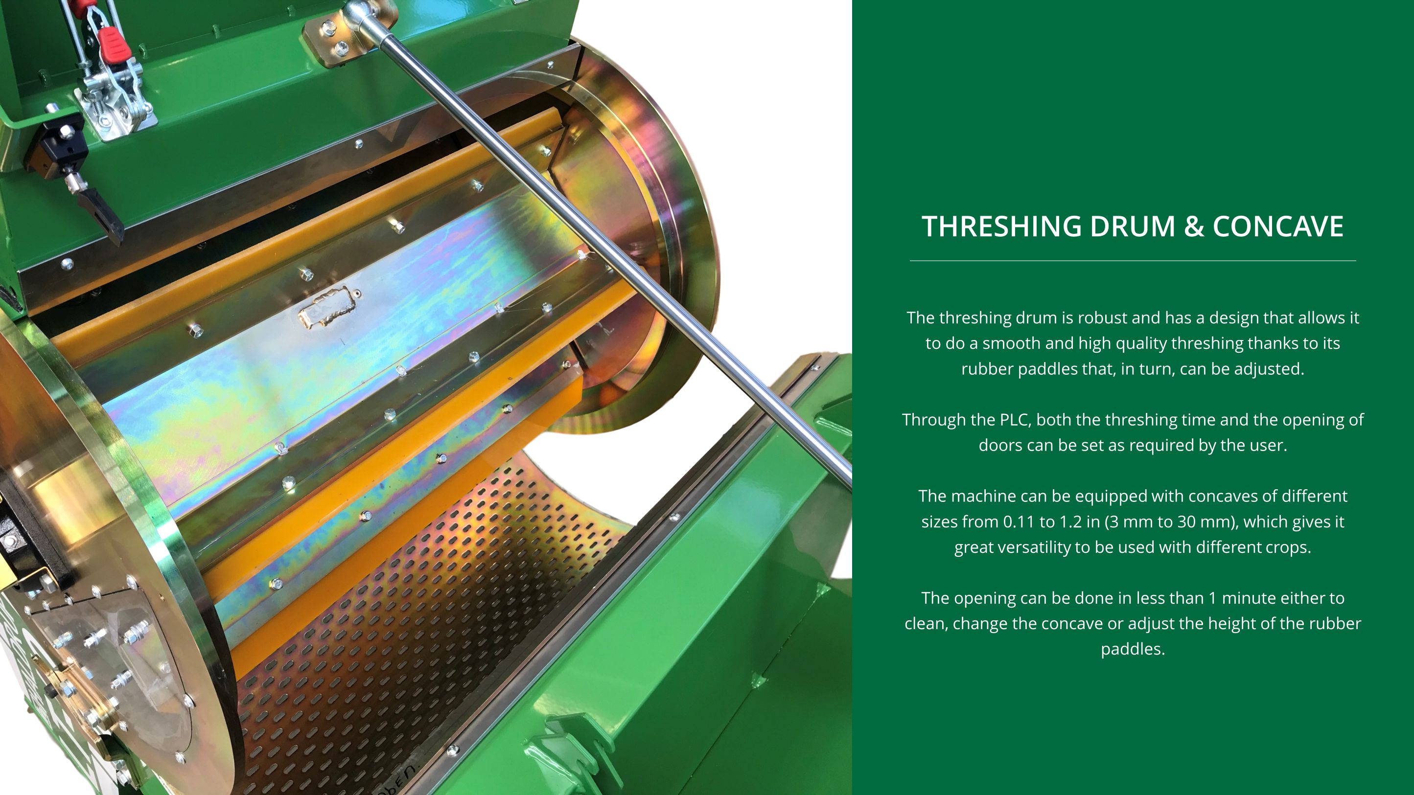 The continuous speed adjustment of wind and threshing drum allow for simple and quick adaption to various cultivated crops.