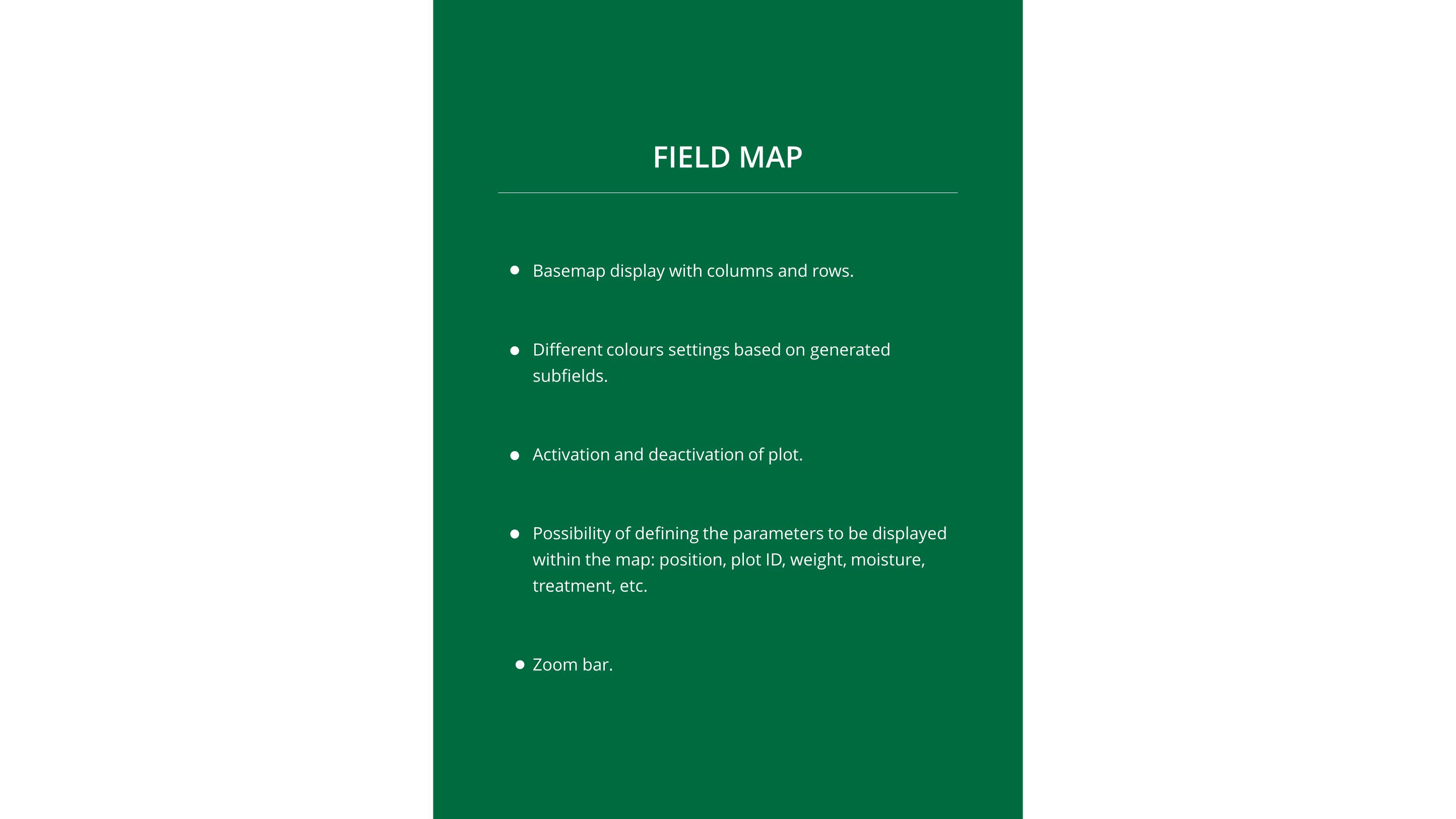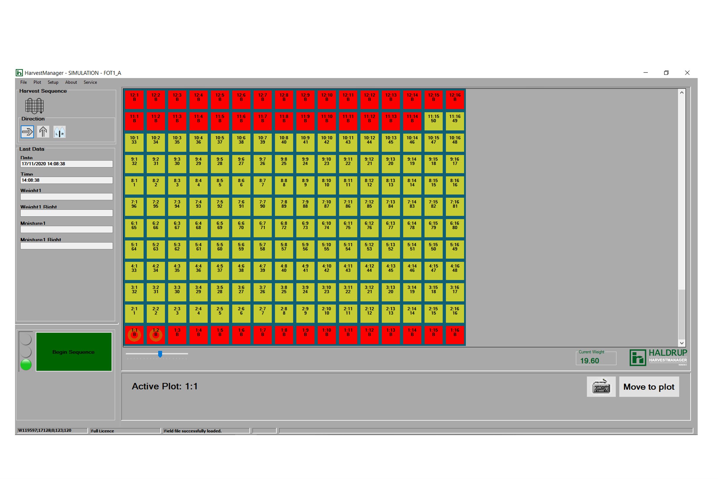 In turn, through this software you can import files in CSV format, harvest in different patterns, adjust harvest sequence values, collect information such as test weight, total weight, moisture, temperature, etc., print labels for seed samples, connect external devices like NIR, etc