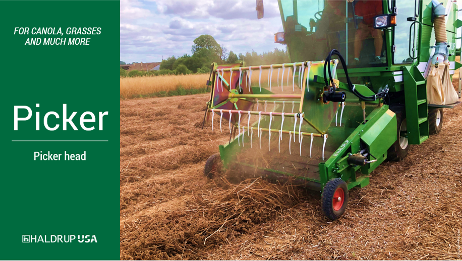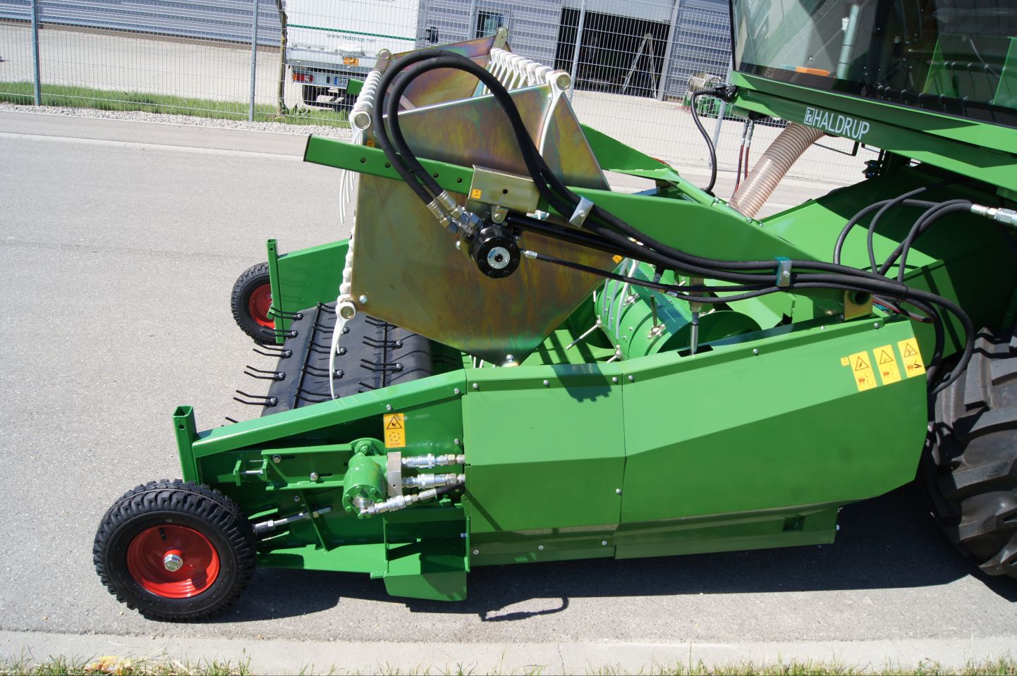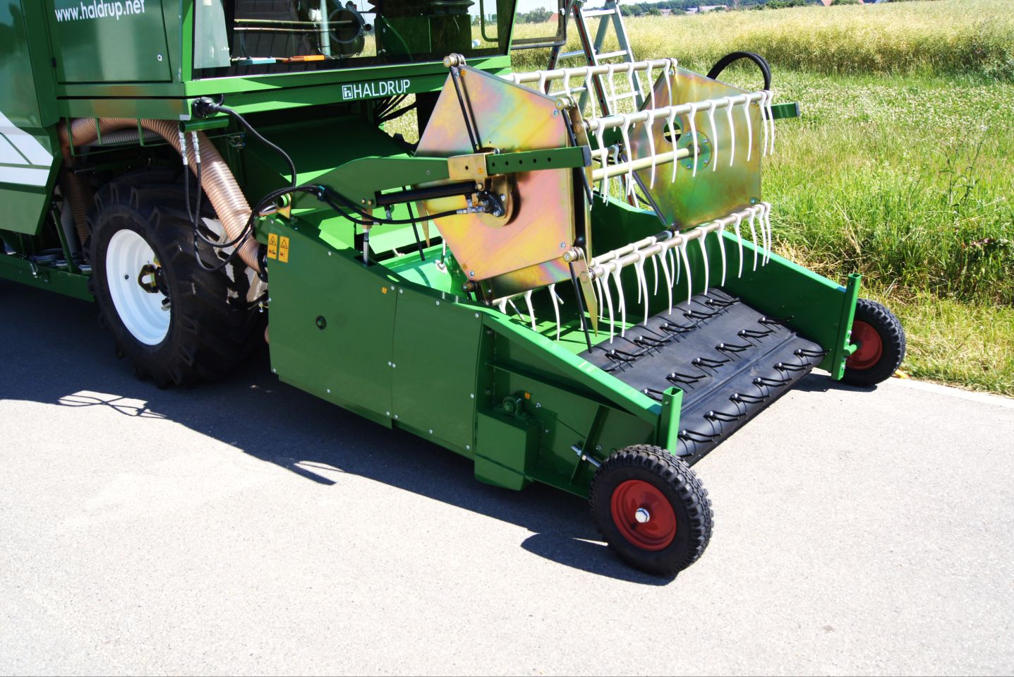HALDRUP Picker is an attachment for the cutting table to picked-up the swathed rape or peas and harvested gently.
