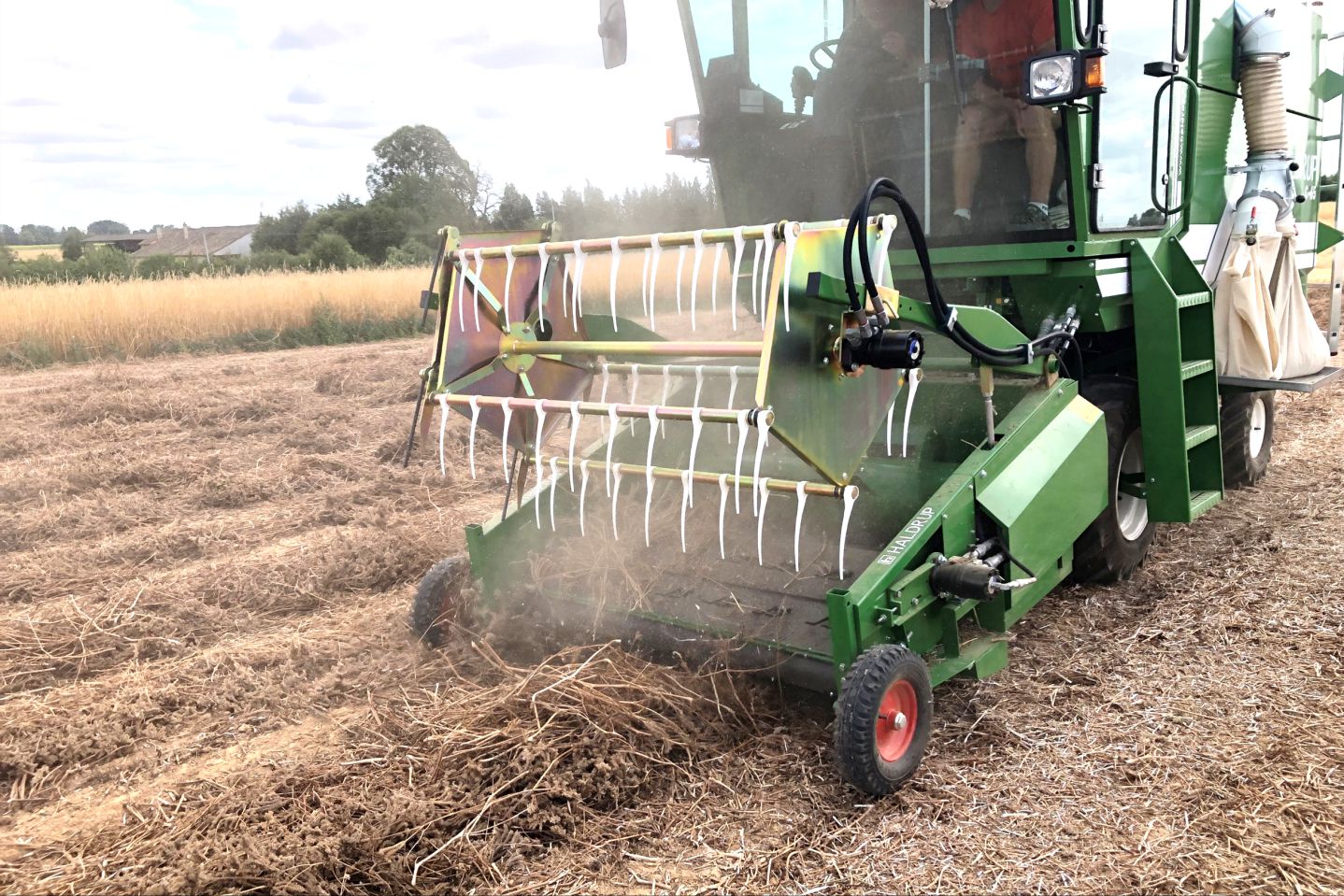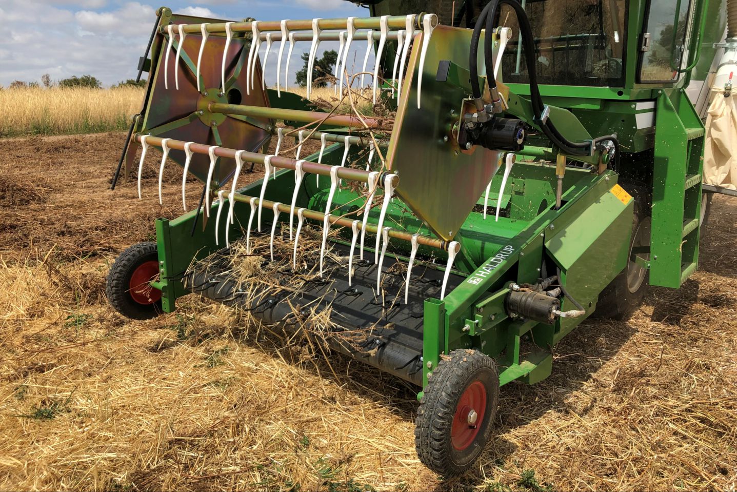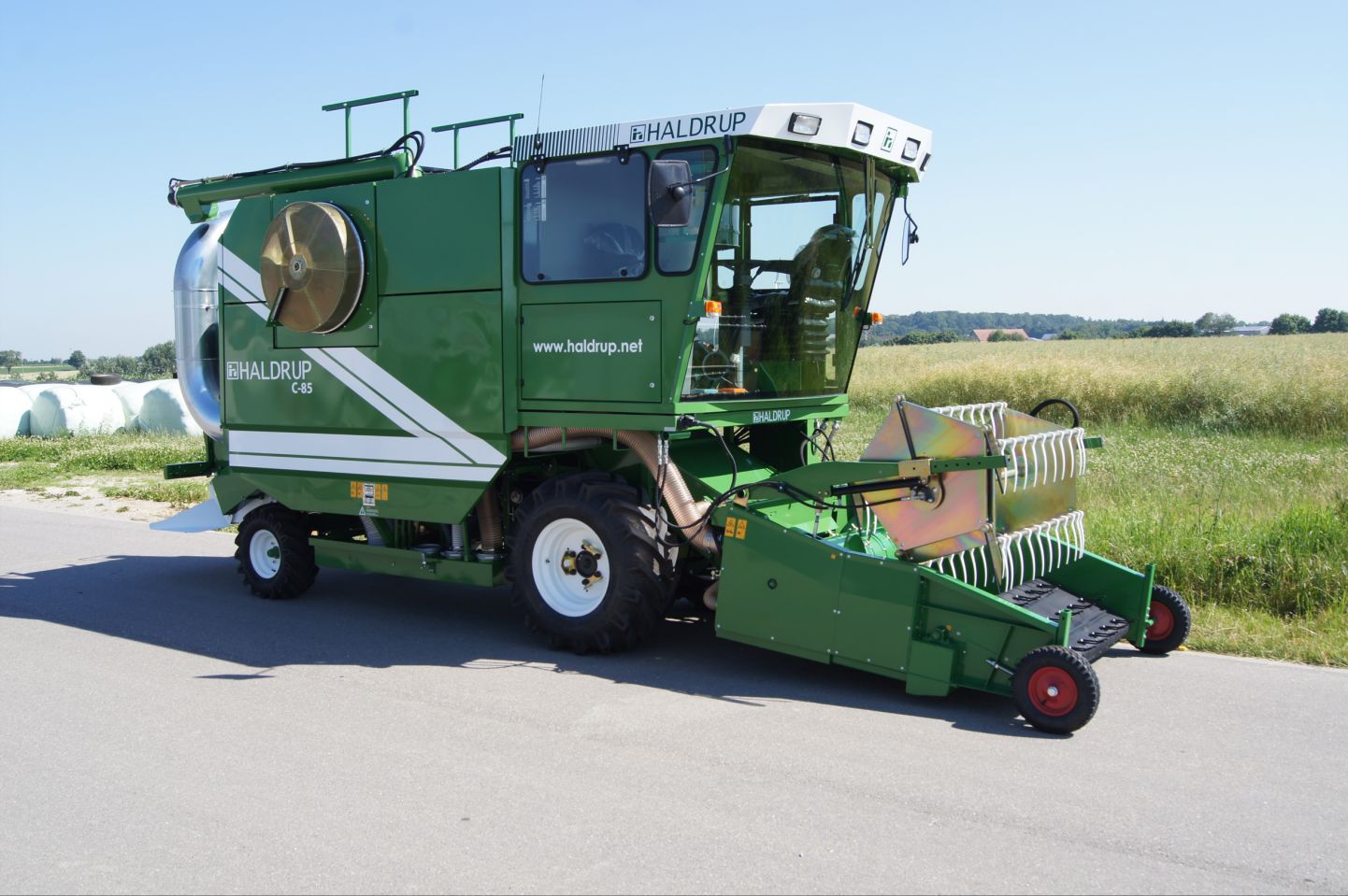 HALDRUP Picker is an attachment for the cutting table to picked-up the swathed rape or peas and harvested gently.