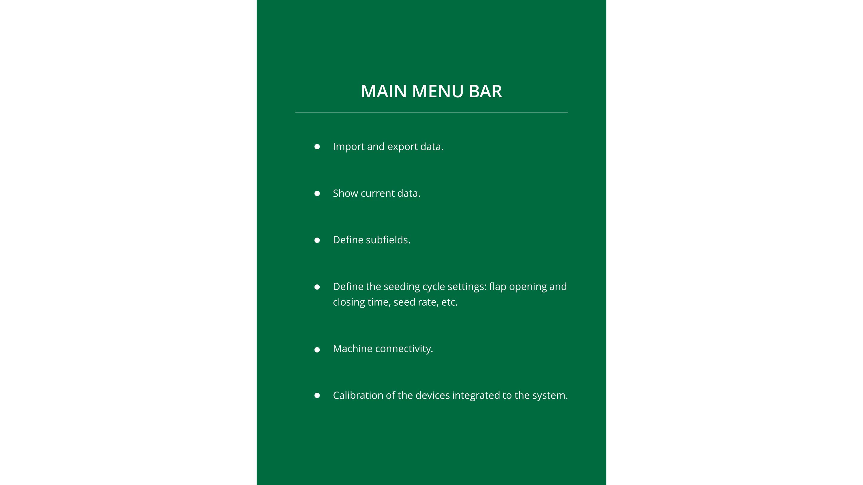 HALDRUP SEEDER MANAGER is a software completely developed by HALDRUP to provide the user all the possibilities during the seeding process.