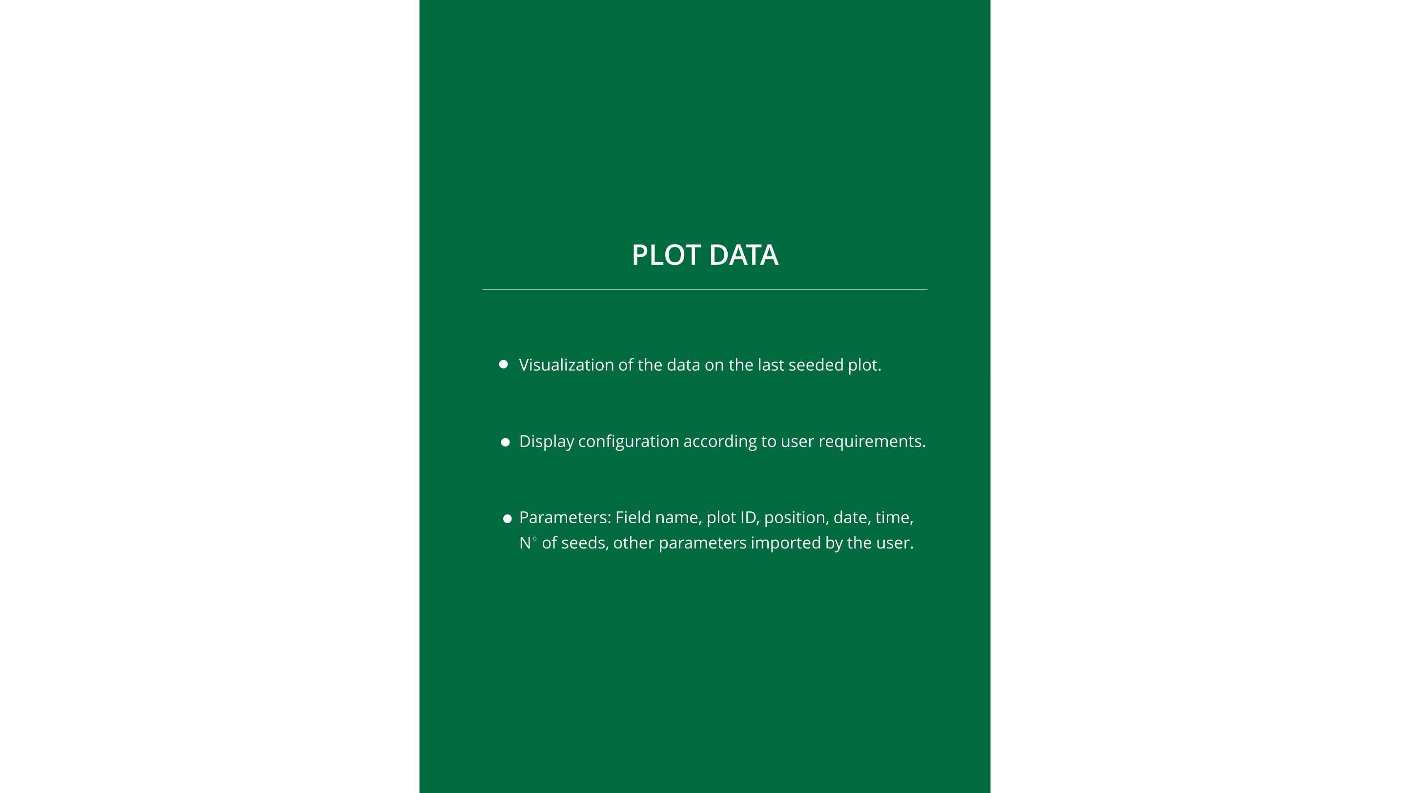 In turn, through this software you can import files in CSV format, seeding in different patterns, adjust seeding sequence values, collect information such as plot distance, speed, N° of seeds, etc