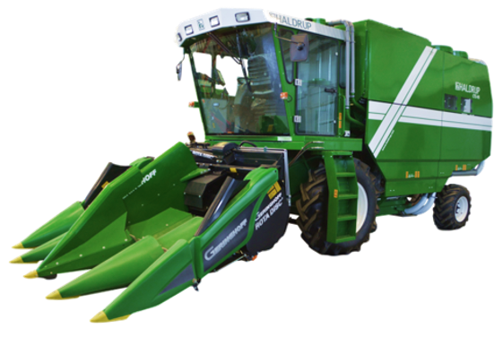 The HALDRUP Twin series plot combine is the only machine on the market completely divided in two, that is, from the header to the grain tank.