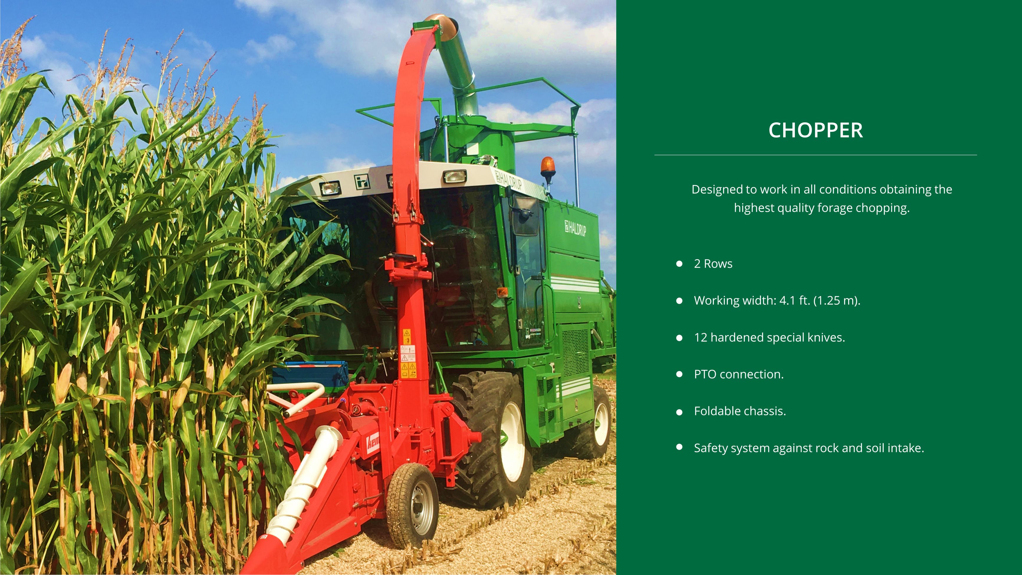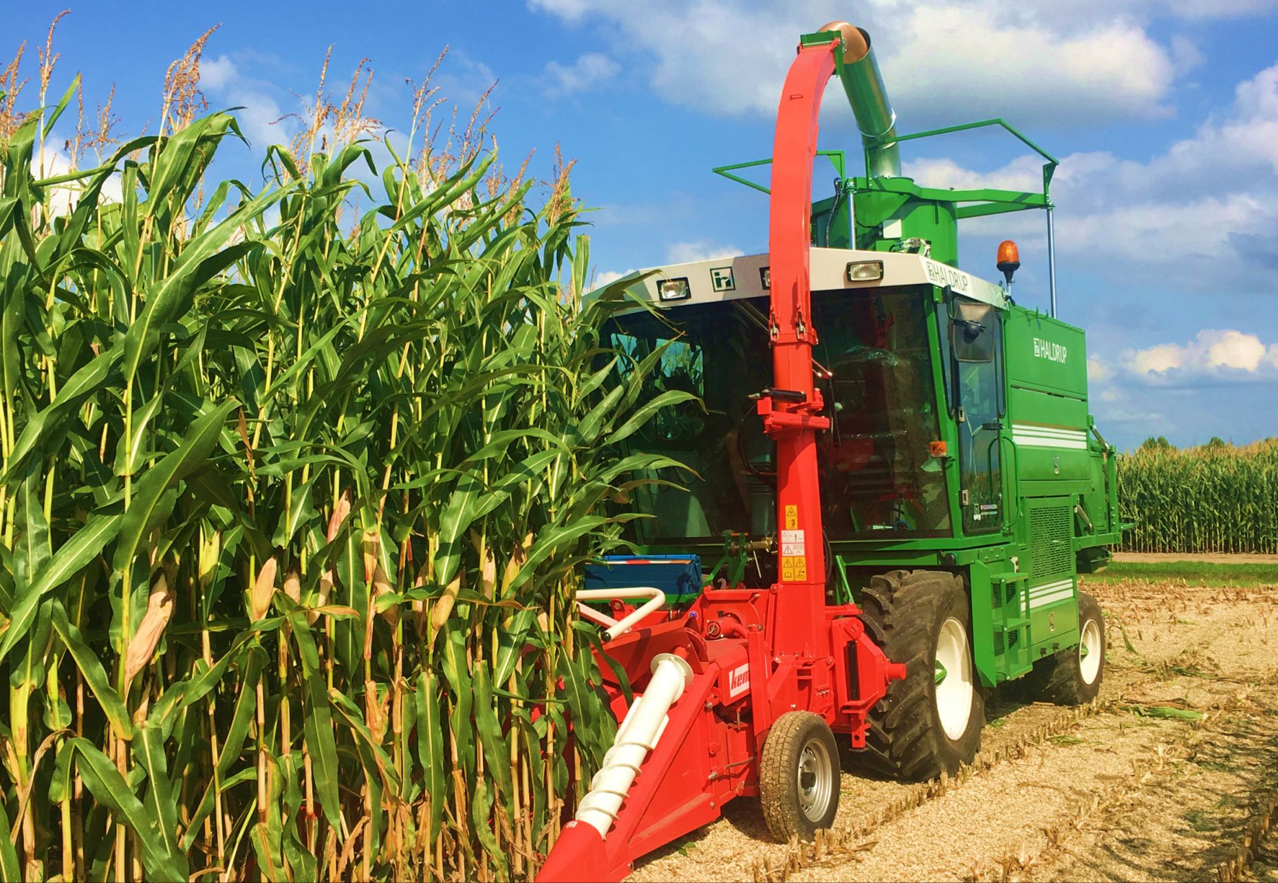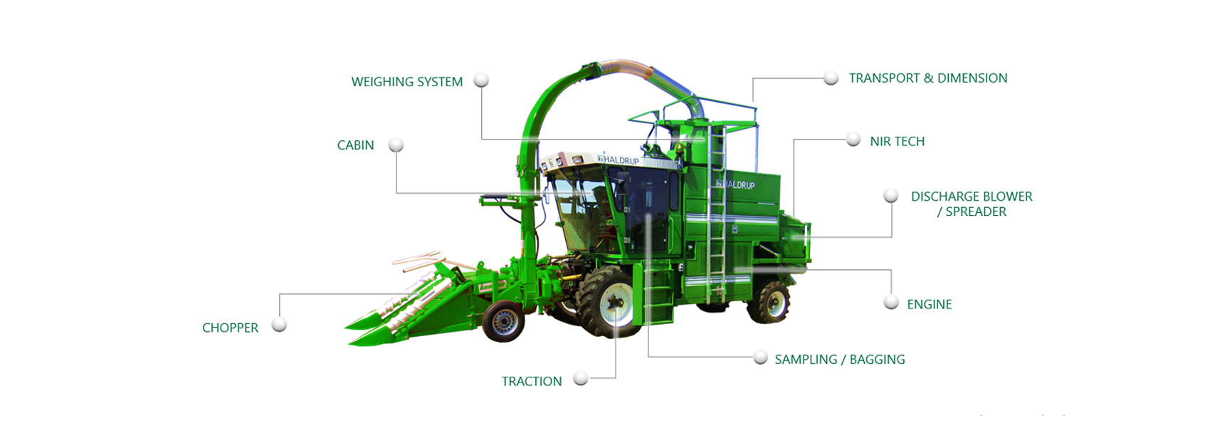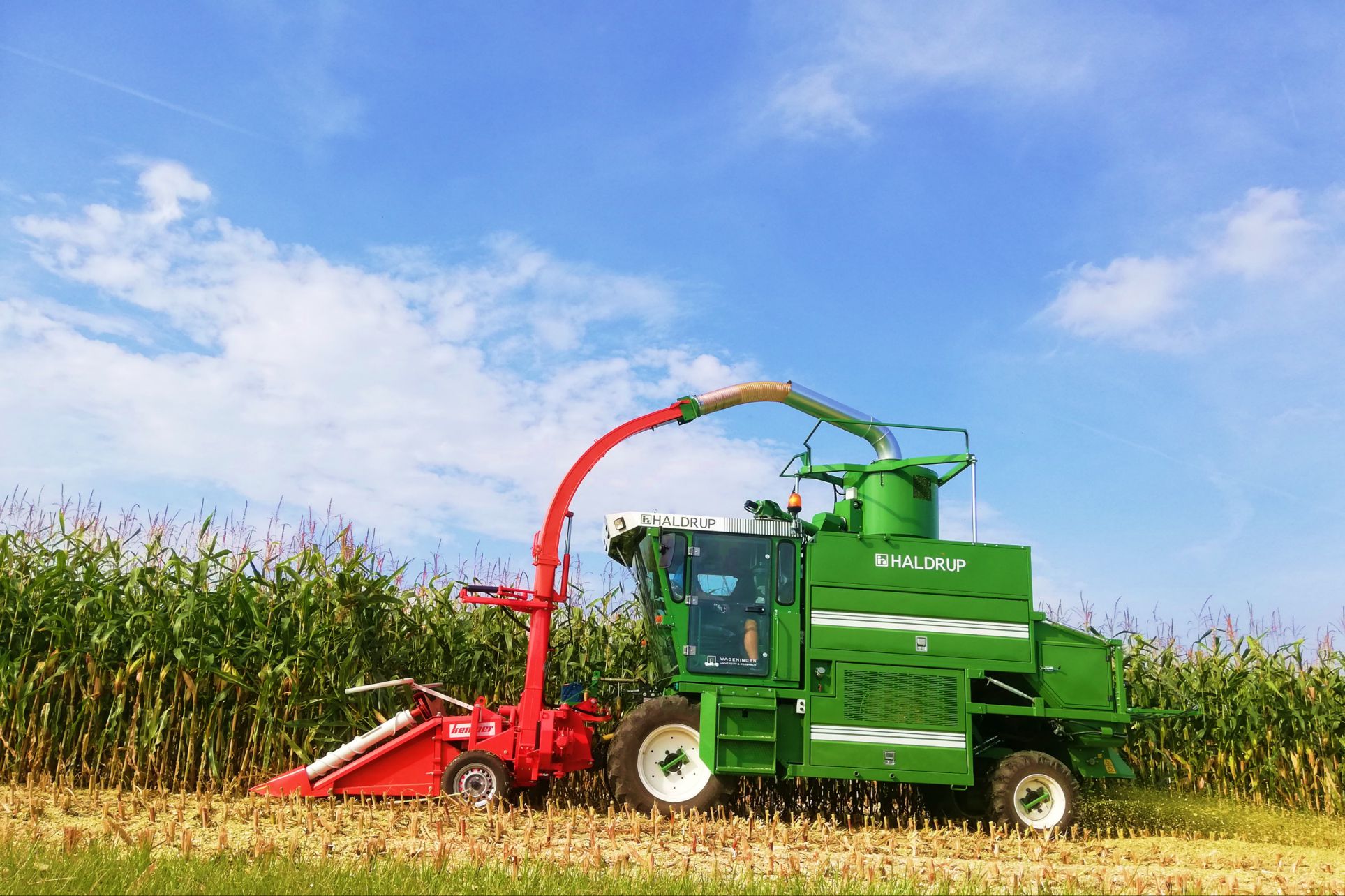 HALDRUP M-65 is the self-propelled version for chopping corn, sorghum, pastures, etc. whose power stands out since it can be equipped with up to 216 HP.