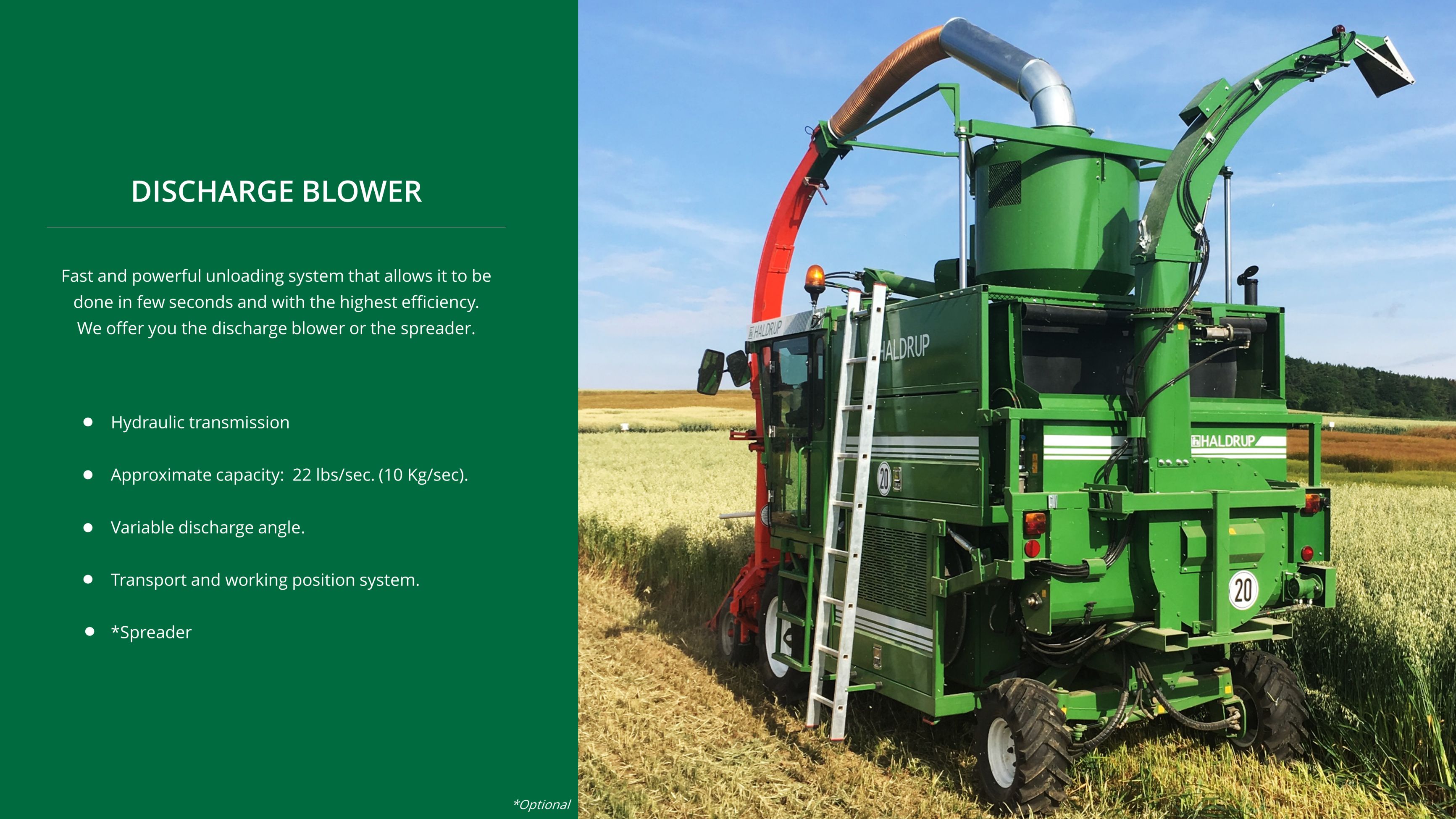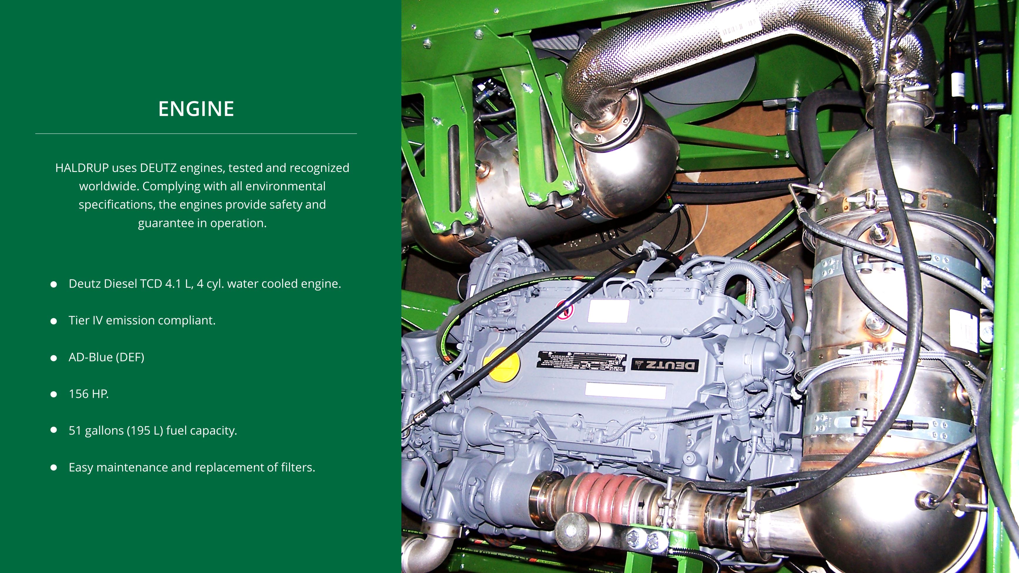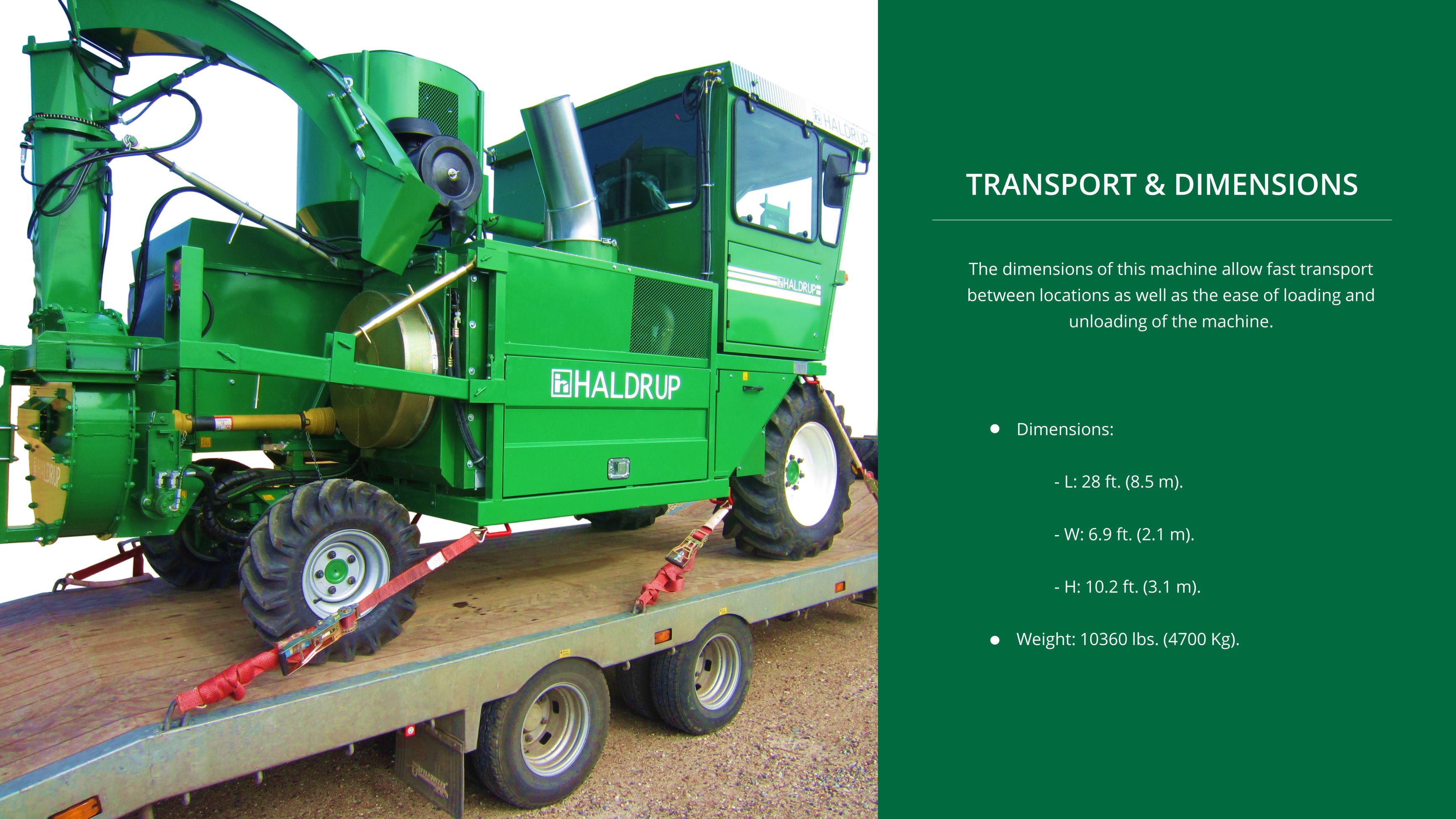 HALDRUP M-65 is the self-propelled version for chopping corn, sorghum, pastures, etc. whose power stands out since it can be equipped with up to 216 HP.