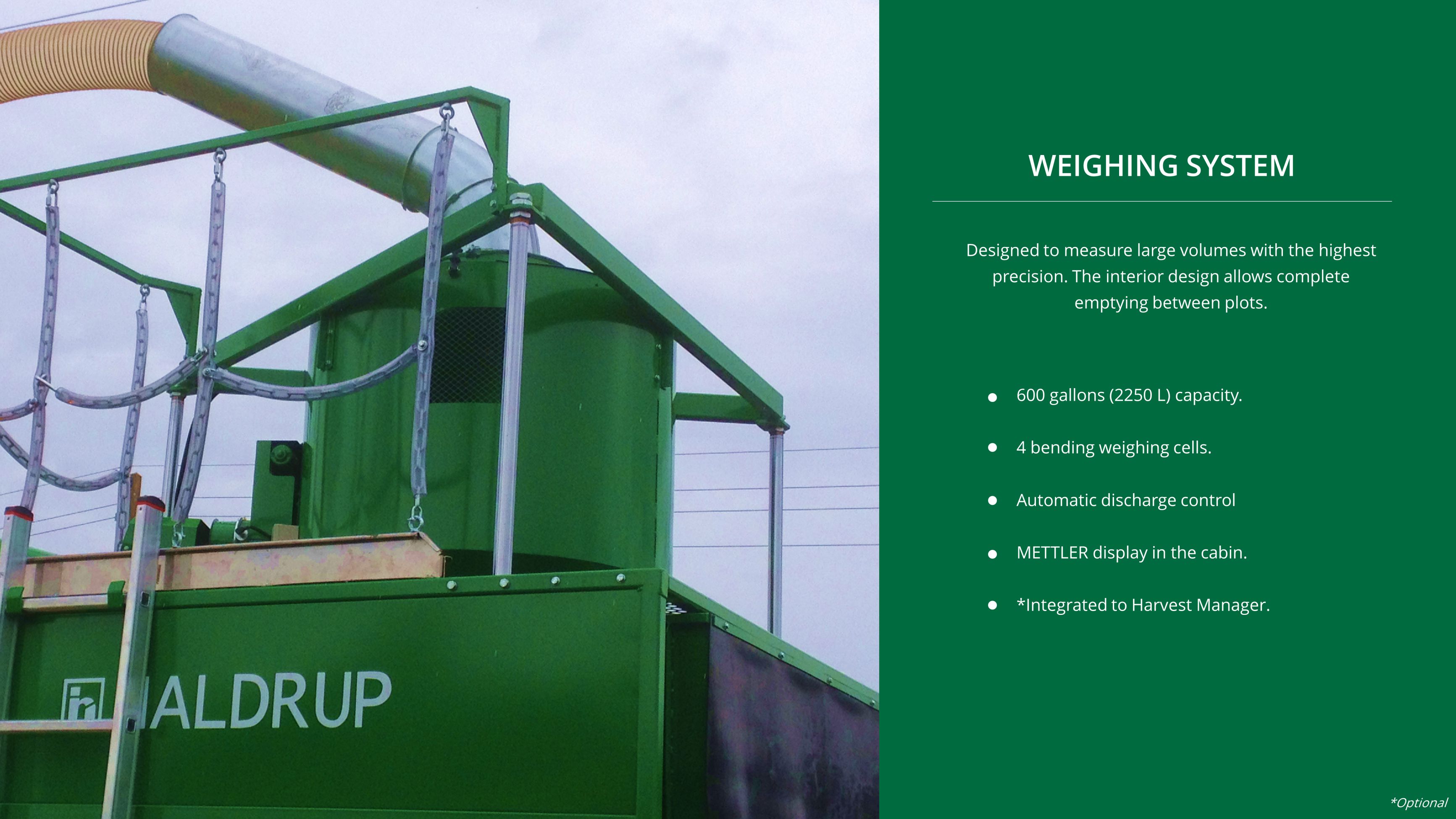 A large capacity of the weighing box allows to process different plot sizes in one shot. The speed of the process is a highlight of the M-65.