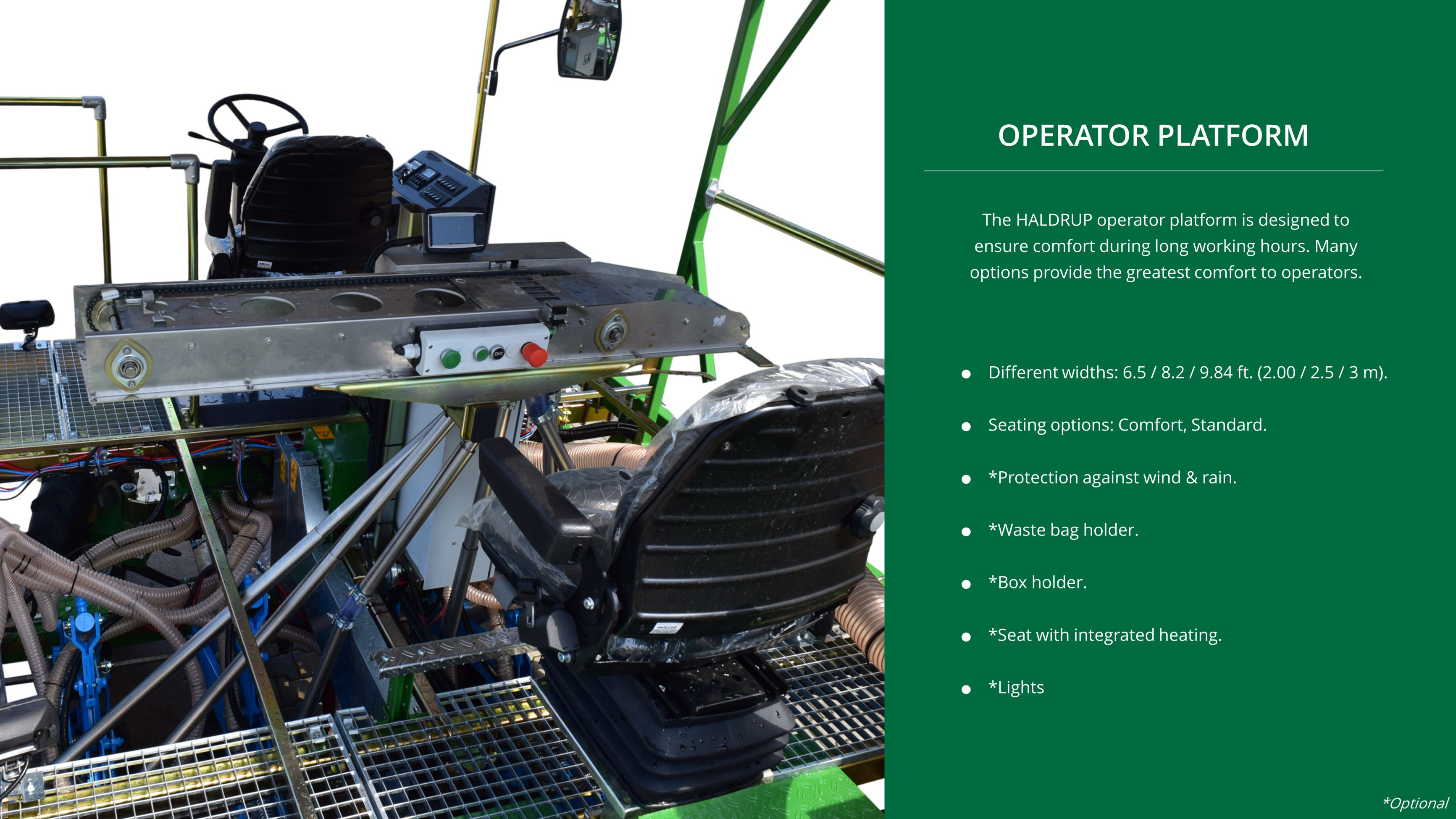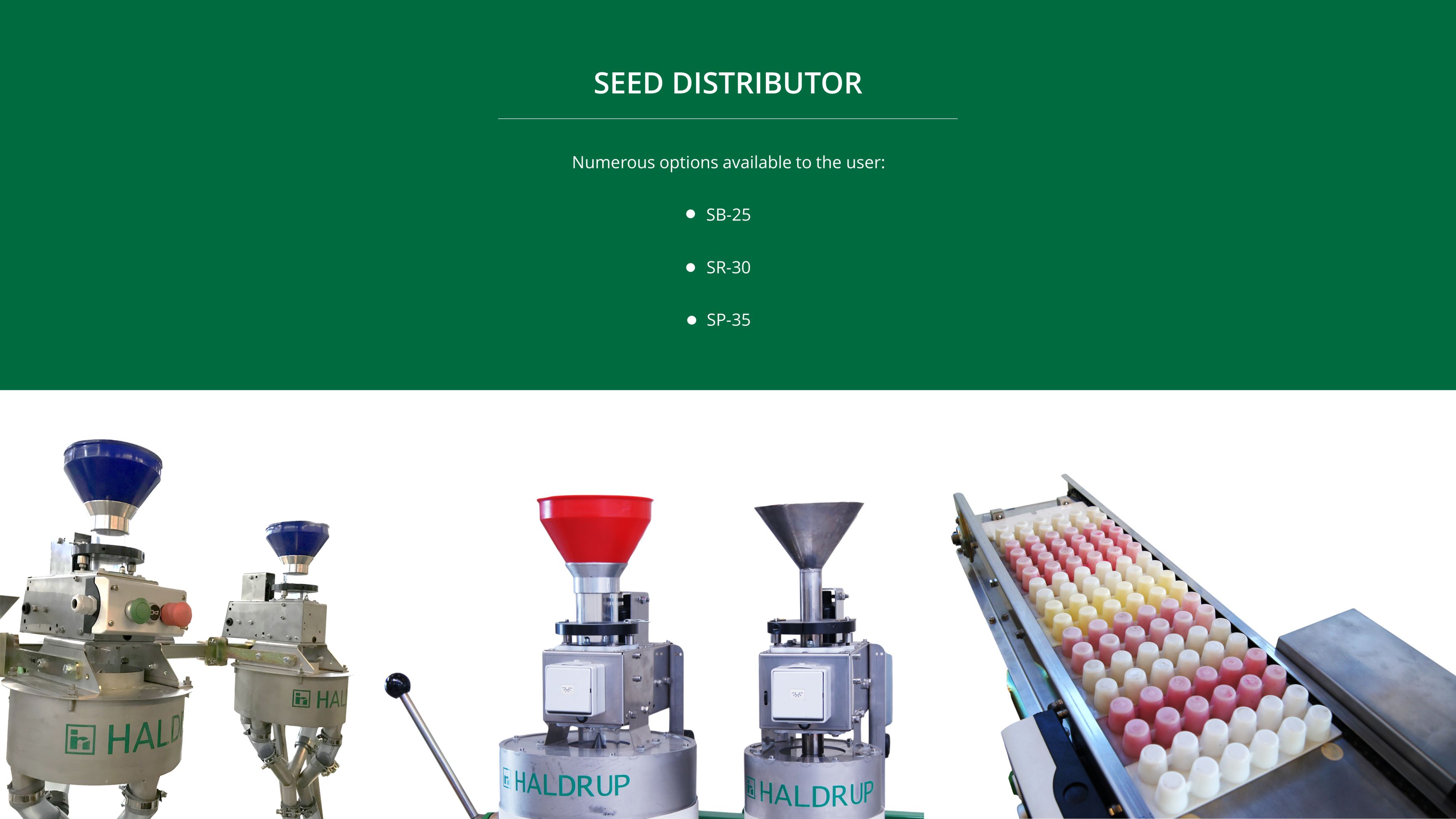 HALDRUP SD-50 is a self-propelled modular base machine that can be equipped with any of the seeding technologies offered by HALDRUP, like precision tech or belt cone tech.